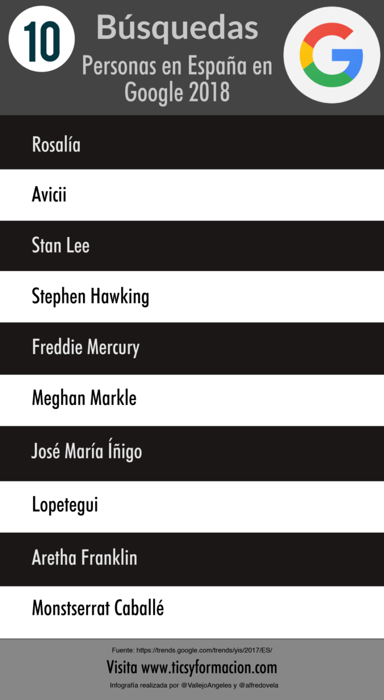 10 búsquedas de personas más realizadas en Google en España 2018 #infografia #Infografía – relacionado con España, Infografía, Sociedad de la información, Google, internet, tic Vía: TicsyFormación
