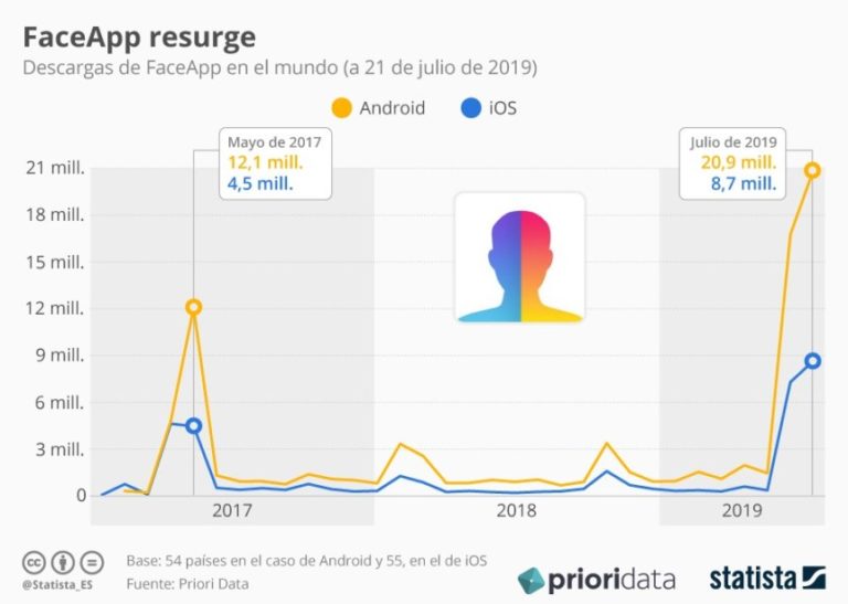 Evolución de las descargas de FaceApp #infografia #infographic #apps