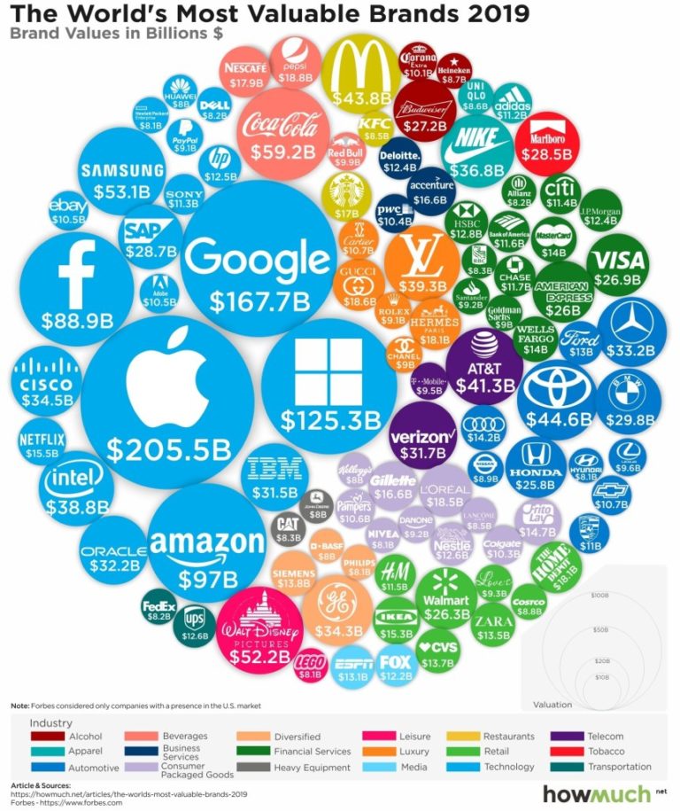 100 marcas más valiosas de 2019 #infografia #infographic #marketing #Infografía – relacionado con Economía, Infografía, Marketing on line, Marketing Vía: TicsyFormación