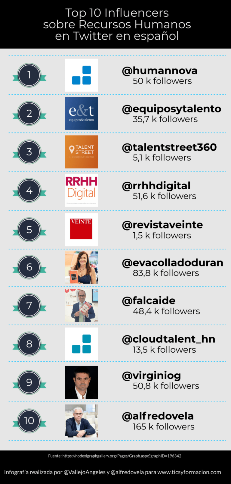 Top 10 Influencers sobre Recursos Humanos en Twitter en español #infografia #socialmedia #rrhh