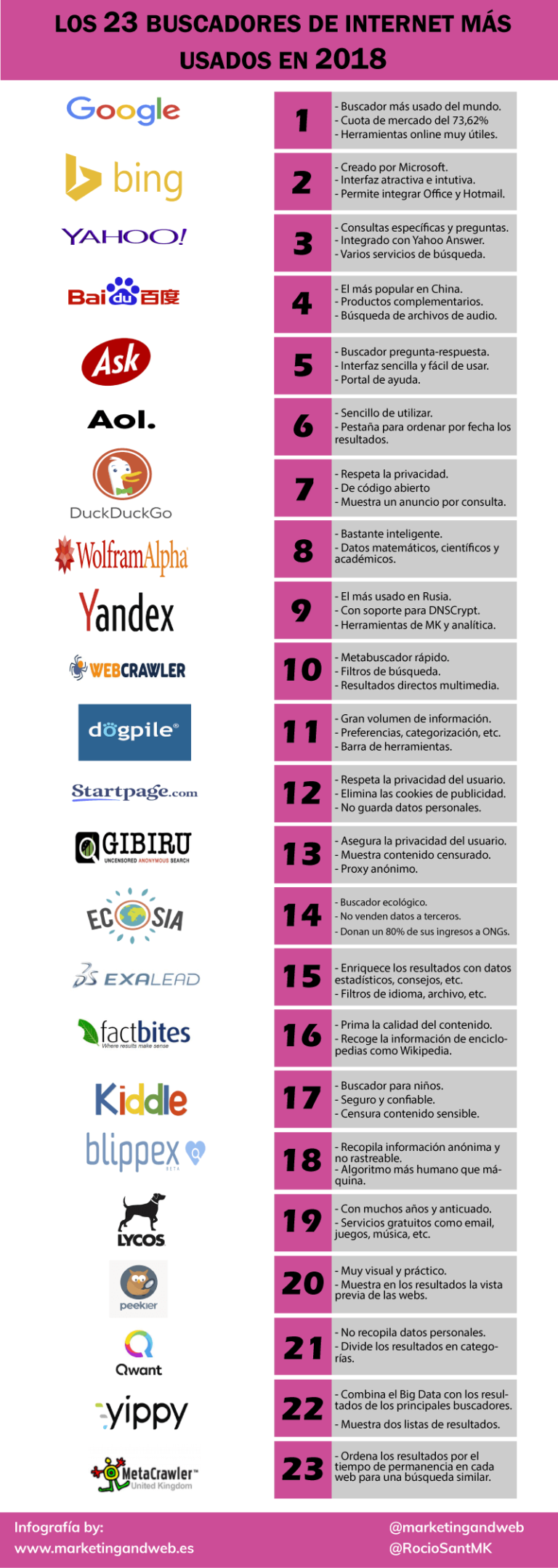 23 buscadores más utilizados en Internet #infografia #infographic