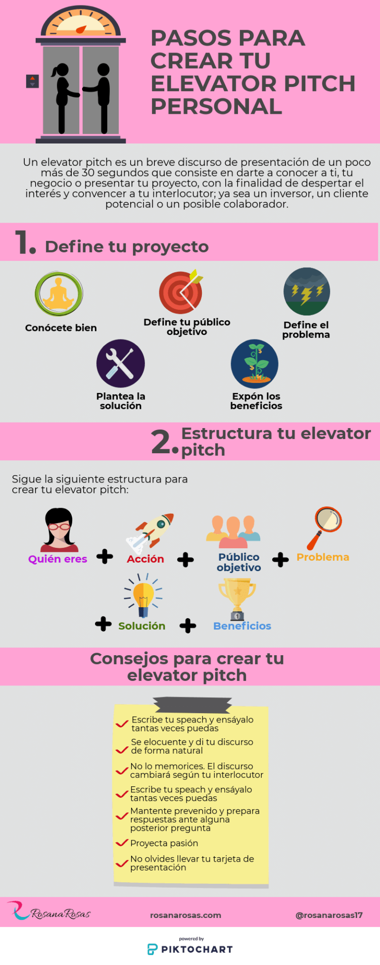 Pasos para crear tu Elevator Pitch personal #infografia #infographic #marcapersonal