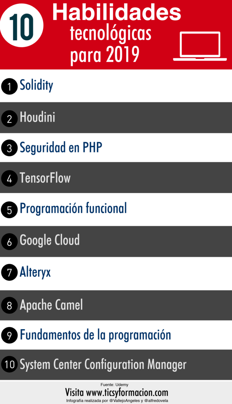 10 habilidades tecnológicas para 2019 #infografia #infographic #empleo