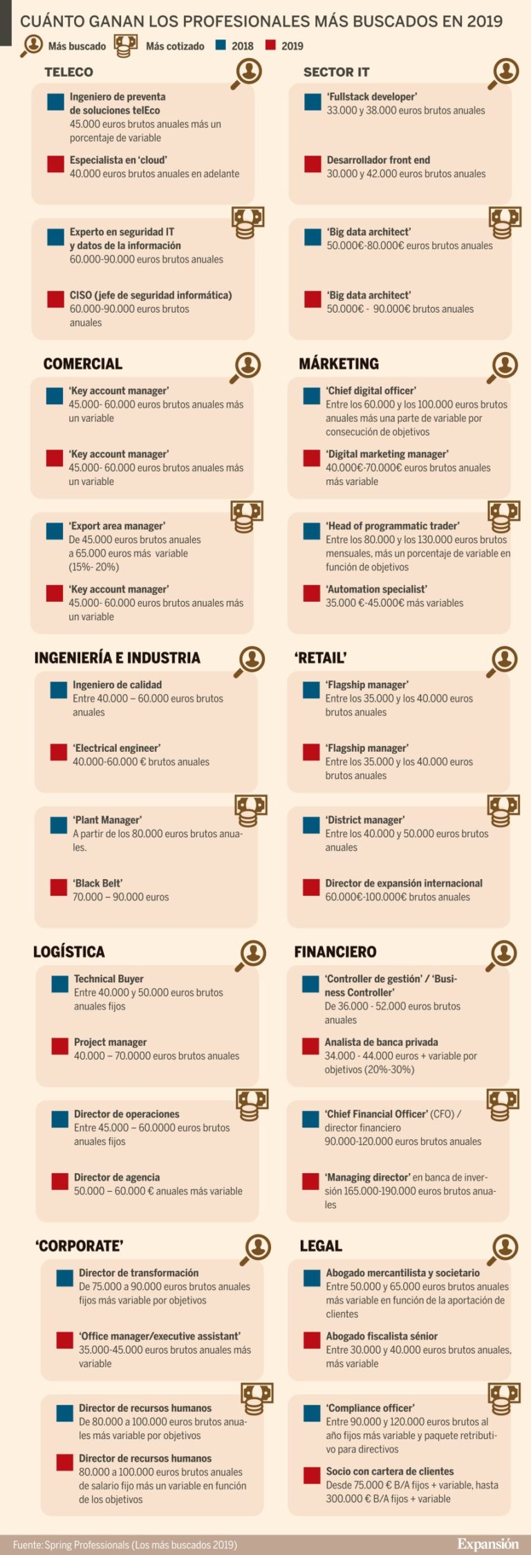 Cuánto ganan los profesionales más buscados #infografia #infographic #rrhh