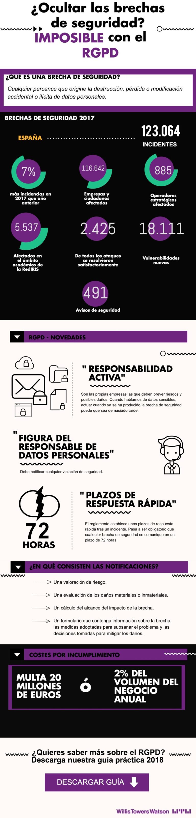 Brechas de seguridad y el Reglamento General de Protección de Datos #infografia #ciberseguridad #rgpd
