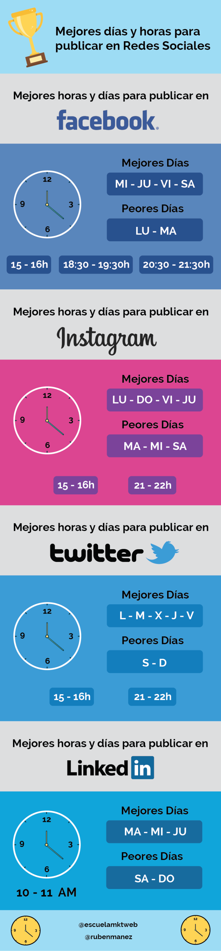 Mejores días y horas para publicar en Redes Sociales #infografia #infographic #socialmedia